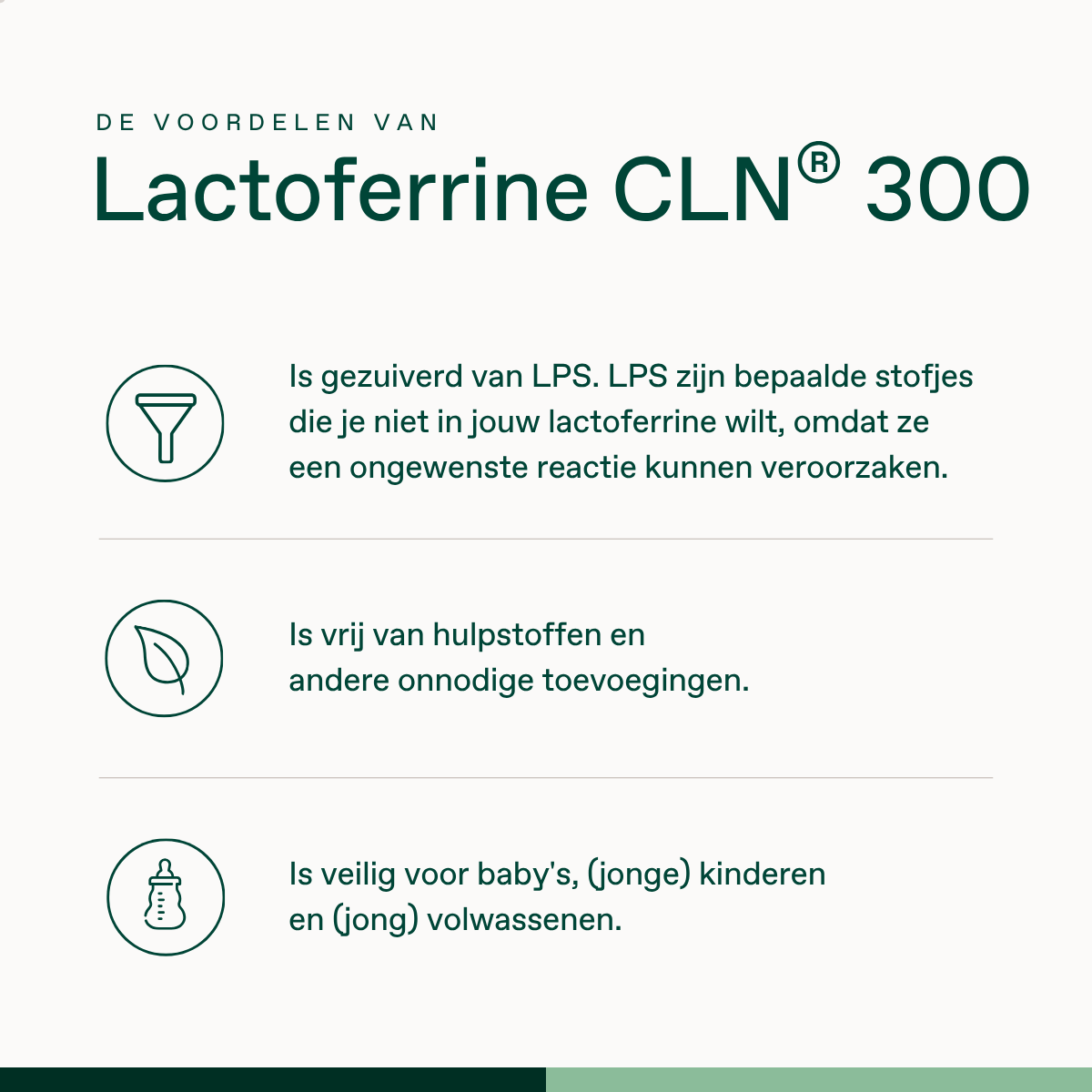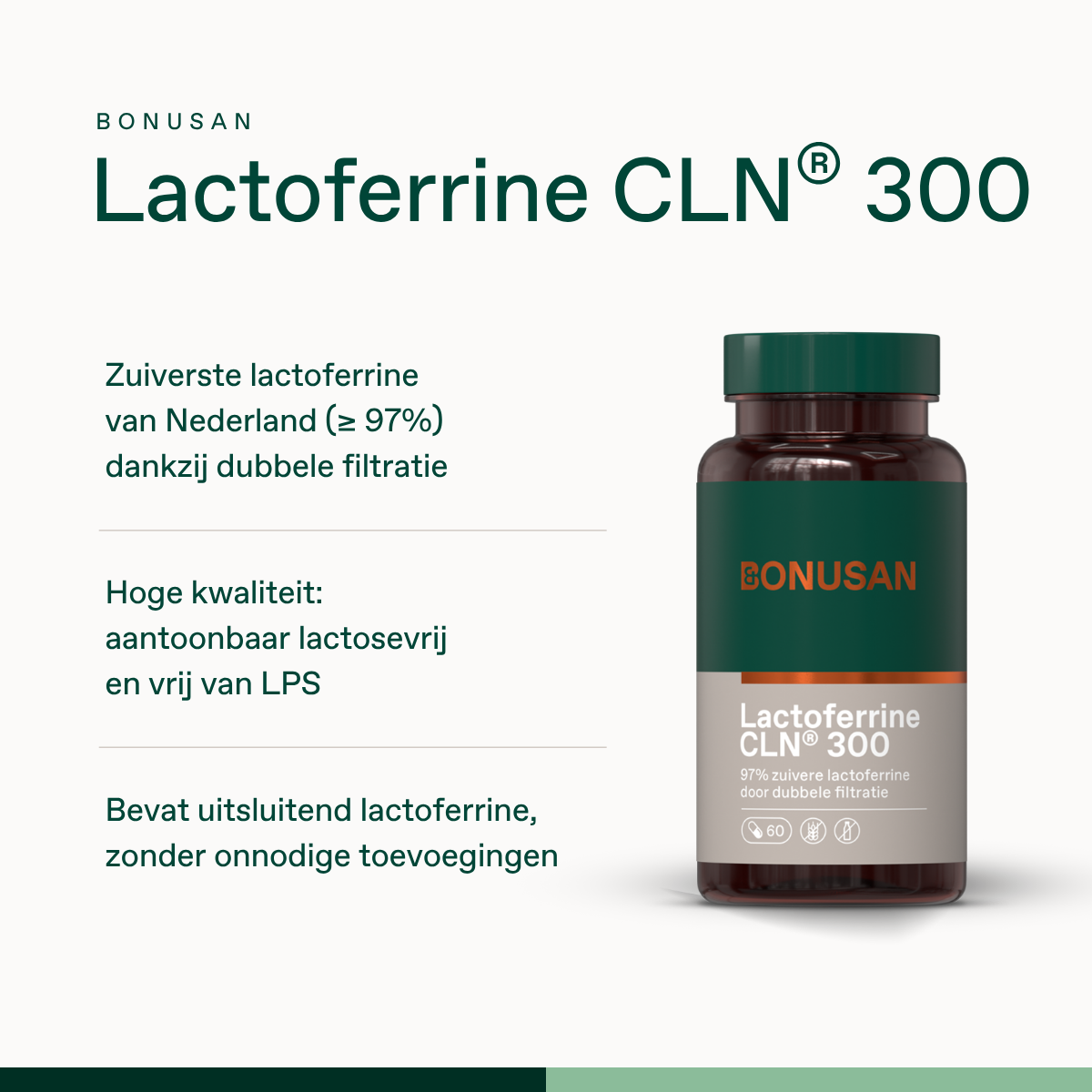 Baby’s krijgen ongeveer 150 mg lactoferrine binnen per 150 ml moedermelk. Als je om wat voor reden dan ook geen borstvoeding kan of wil geven is het fijn dat je kunt terugvallen op een kwalitatief hoogwaardig supplement. Bonusan Lactoferrine CLN® 150 mg kan worden gebruikt om flesvoeding mee aan te vullen. Maak daarvoor de capsule open en meng de inhoud door de flesvoeding.